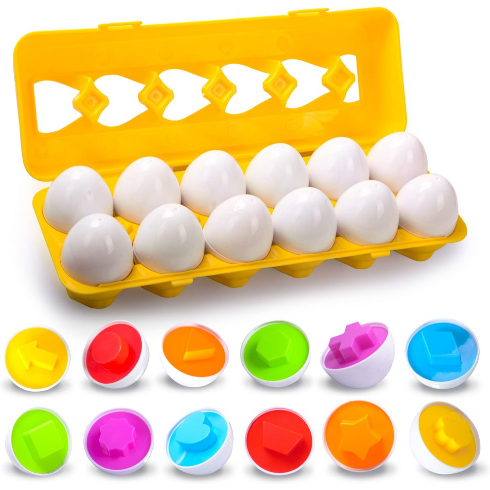 12 Pcs Montessori Kids Learning & Matching Shapes Eggs