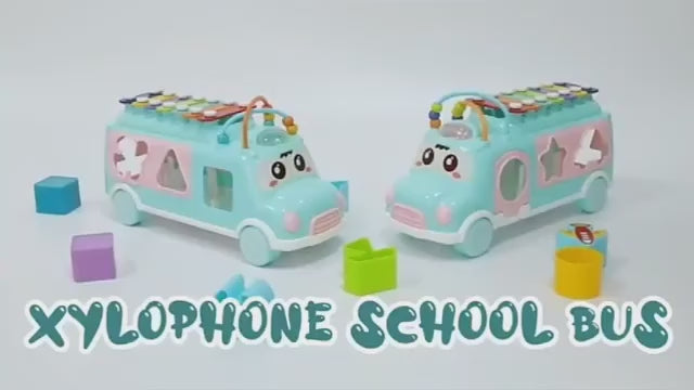 - A multifunctional school bus having variety of features including shape sorting, stringing, playing music allows child to learn while having fun.