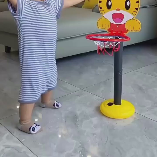 - Featuring an adjustable-height stand, a sturdy backboard, hoop with net, basketball, and pump, this set is perfect for young kids to enjoy active play.