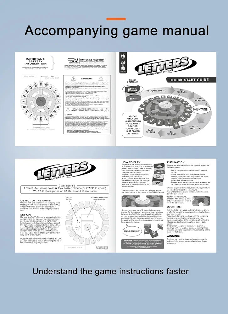 - 1 Tapple Game Board with built-in timer and letter buttons.