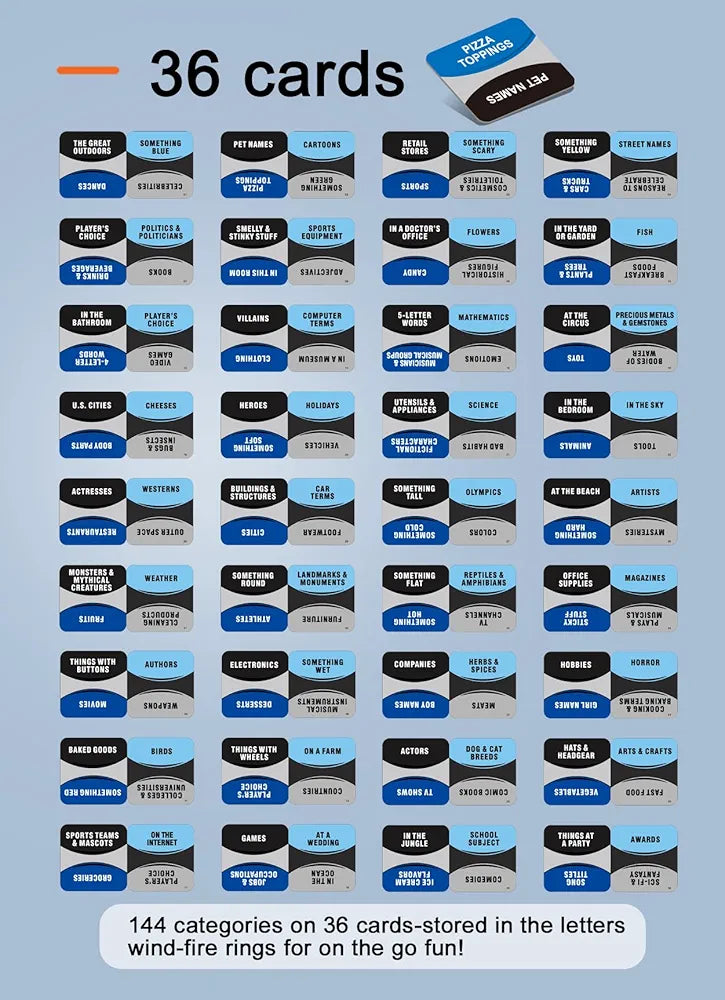 - 36 Fun Category Cards with hundreds of engaging topics to keep the game fresh.