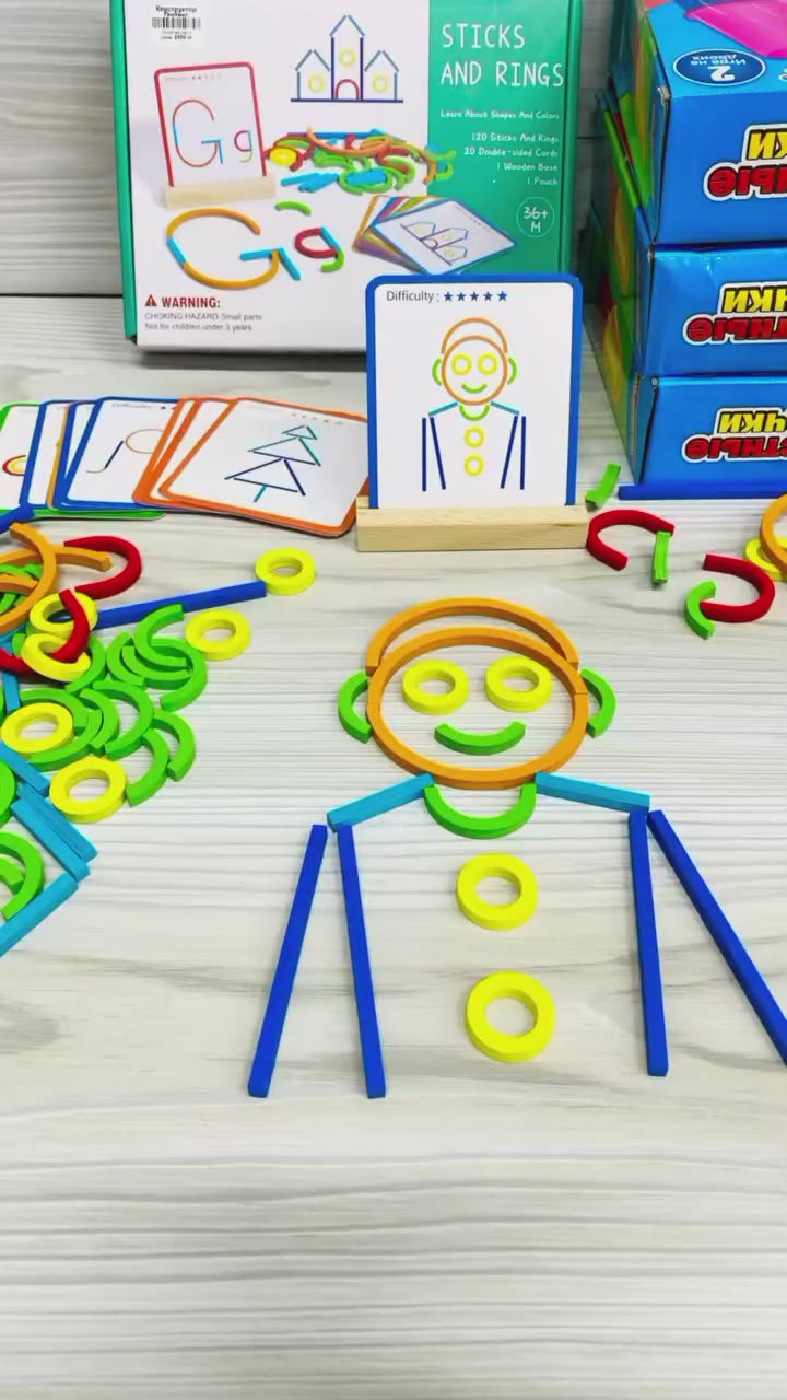 Wooden Sticks and Rings Pattern Making Puzzle Game